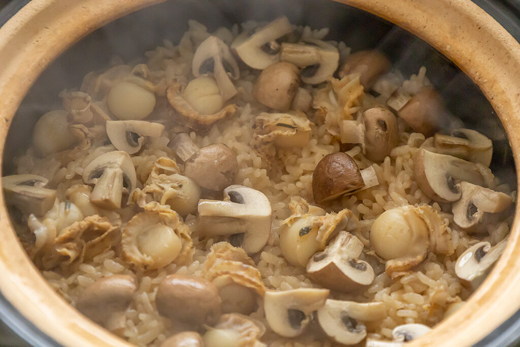 きのこの香りが部屋いっぱいに広がる、秋を感じる洋風炊き込みごはんです。のせて炊くだけの簡単レシピですが、おもてなしにもぴったり! ぜひお試しください。