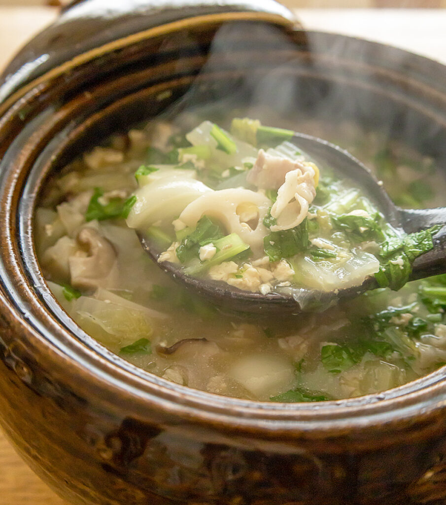 朝晩と冷え込み始め、温かいスープが恋しくなるこの季節。旬の野菜をたっぷり使って、大きな土鍋で豚汁を作りました。土鍋の余熱調理で柔らかく美味しく仕上げます。