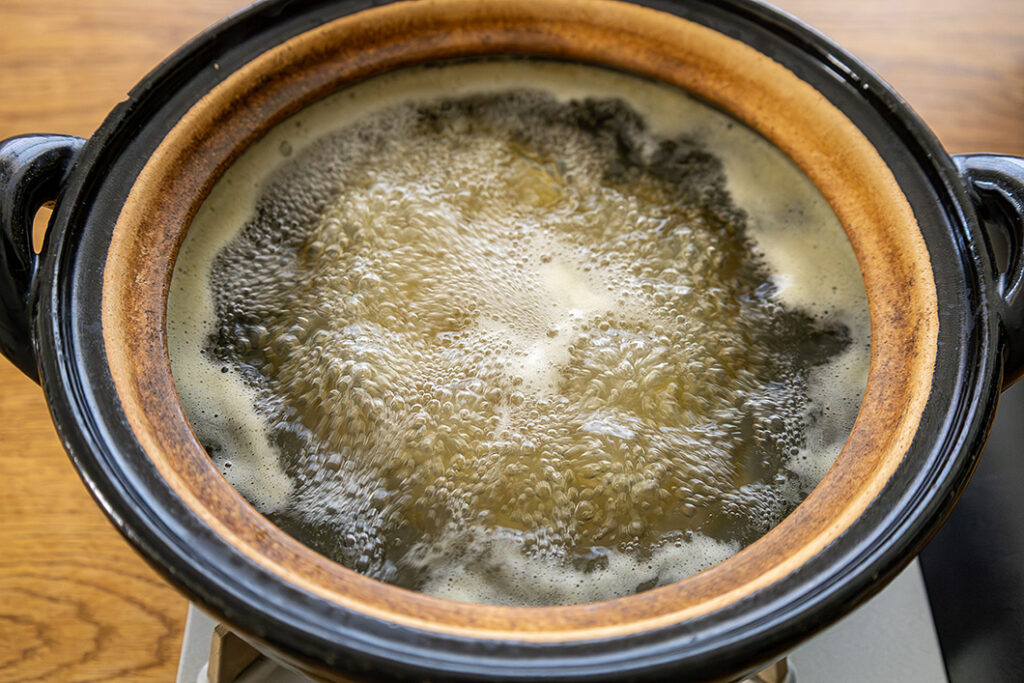 (2)土鍋でパスタをゆで始める