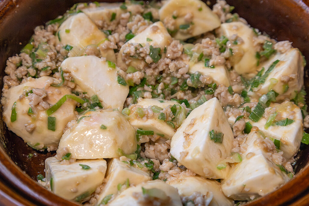 土鍋を中火にかけ、バターを入れる。バターが溶けたらひき肉を加えて炒める。肉の色が変わったら長ねぎを加えて炒め、しんなりしたら【A】を加えてさらに炒める。