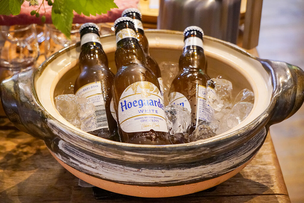 蓄熱力のある土鍋は冷気も保つことができます。土鍋に入れた氷と、土鍋に含ませた水が蒸発するときの気化熱効果が相まって、ふた付きの保冷器としても使えます。 陶製すのこをはずして、お酒を冷やすボトルクーラーとして使うのもおすすめです。