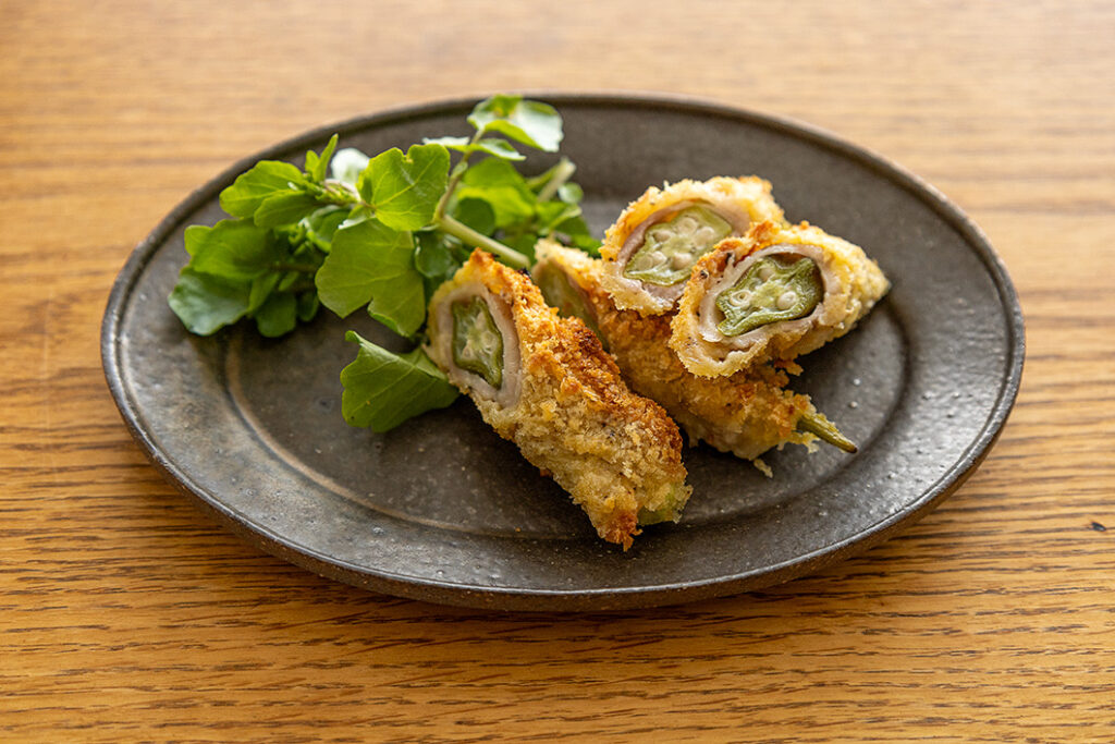 オクラの肉巻きフライ風