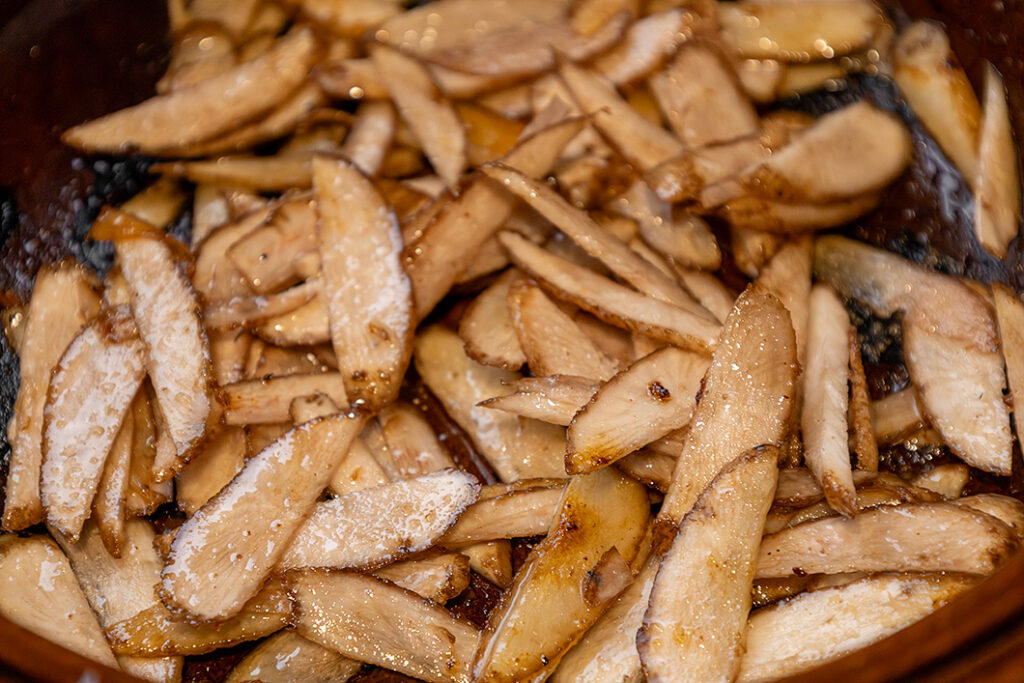 「ビストロ土鍋」は空焚きが可能なので、野菜や肉を焼いたり炒めたりすることができます。下ごしらえ〜煮込み〜食卓の取り分けまで、土鍋ひとつでお楽しみください!