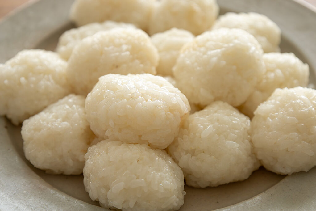 すりこぎがない場合は、しっかり混ぜるだけでもかまいません。水が多め&浸水時間も長めなので、つかなくてもモチモチです。