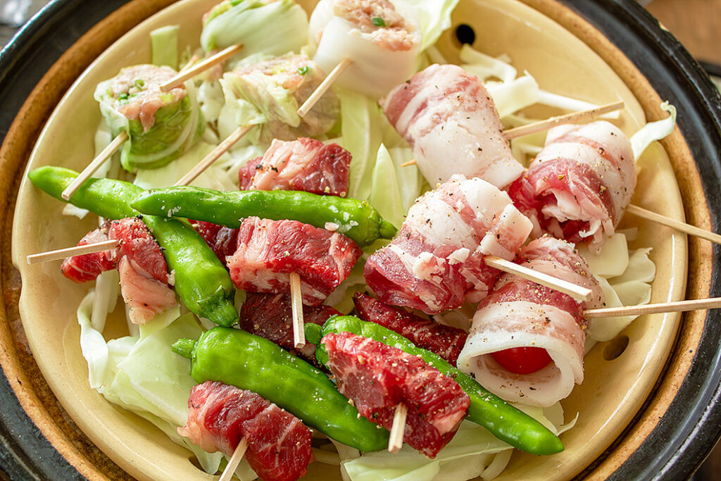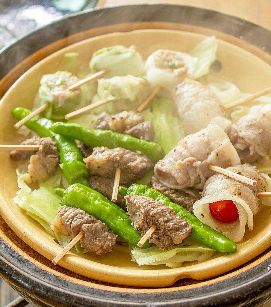卓上で蒸したてアツアツの蒸し料理を楽しむ「蒸し鍋」で、手軽に食べられるピンチョスを作りました。おつまみにもぴったりです。
