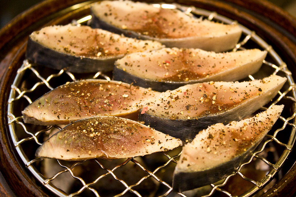 塩鯖にちょっとひと手間を加えて、燻製にしました。