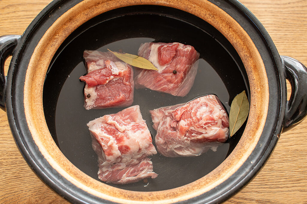 (3)引き続き豚肉を煮る〜余熱調理