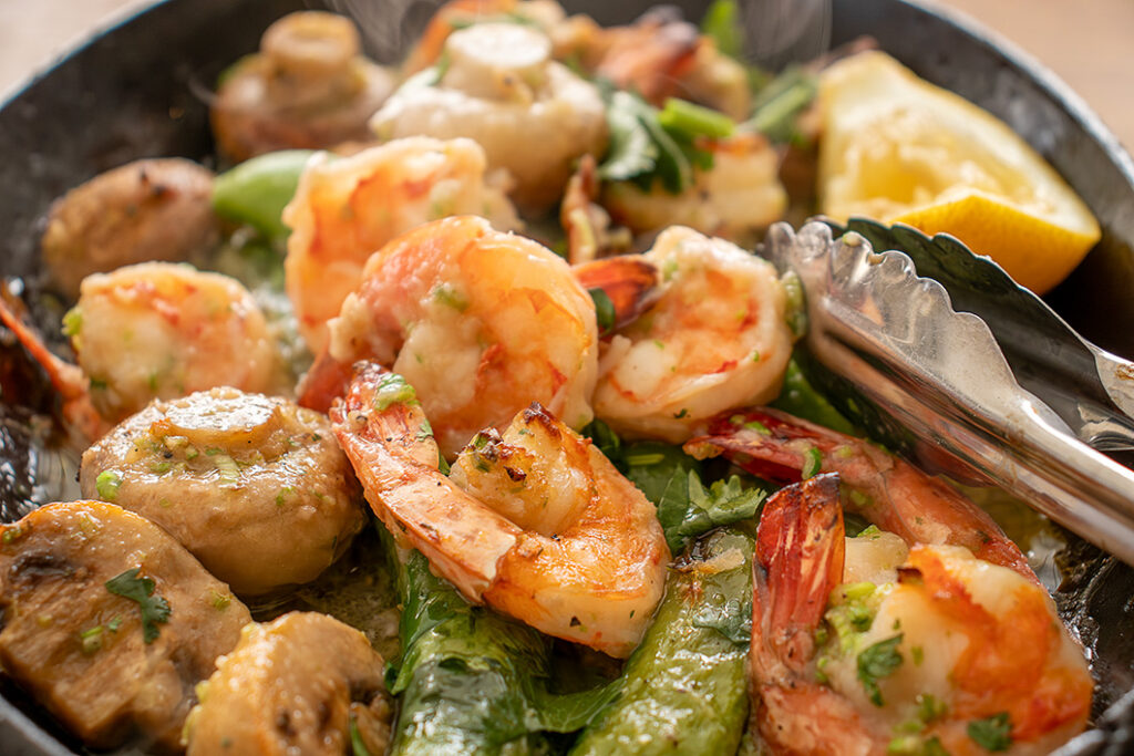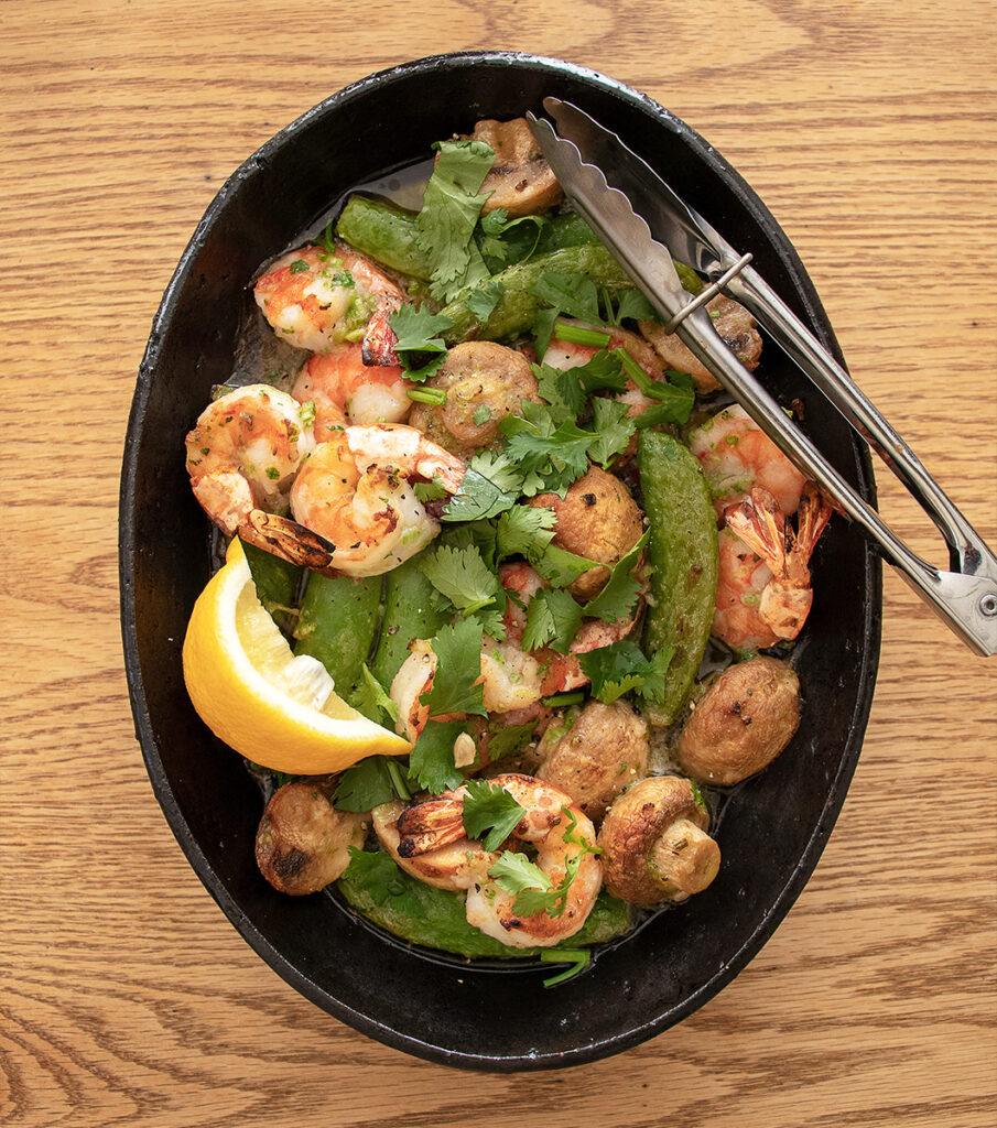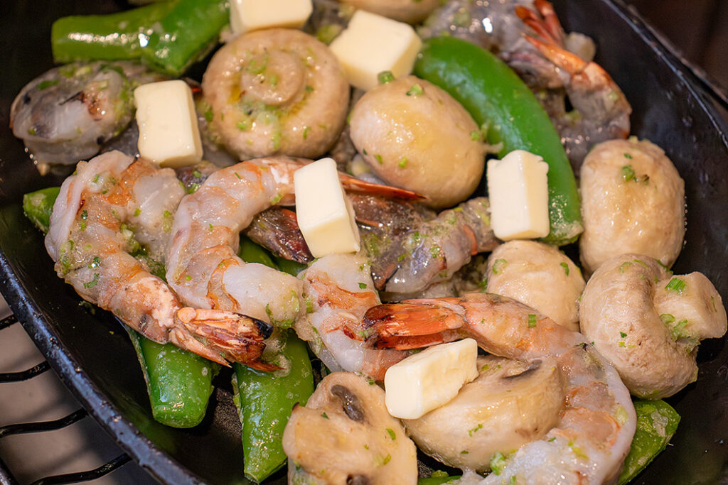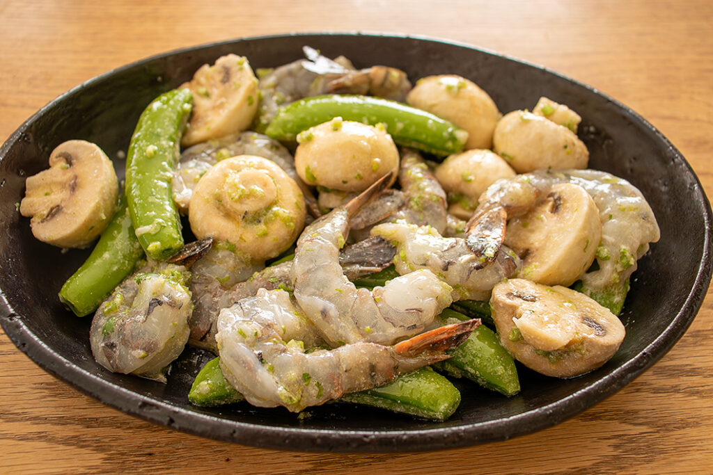 スナップえんどうとエビのグリル