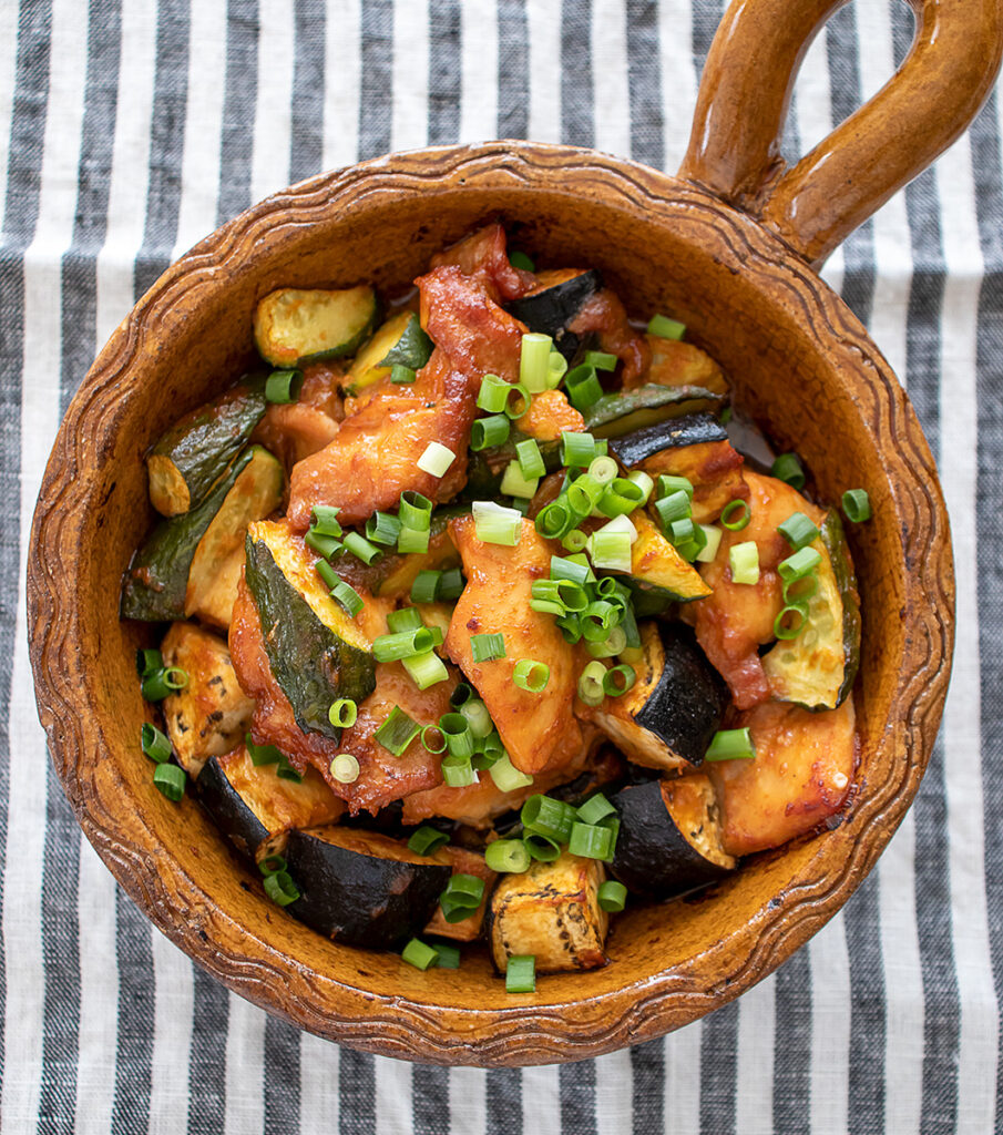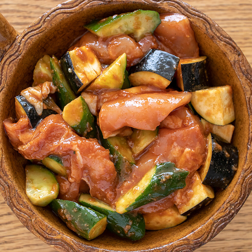 夏野菜と鶏肉のコチュジャン焼き