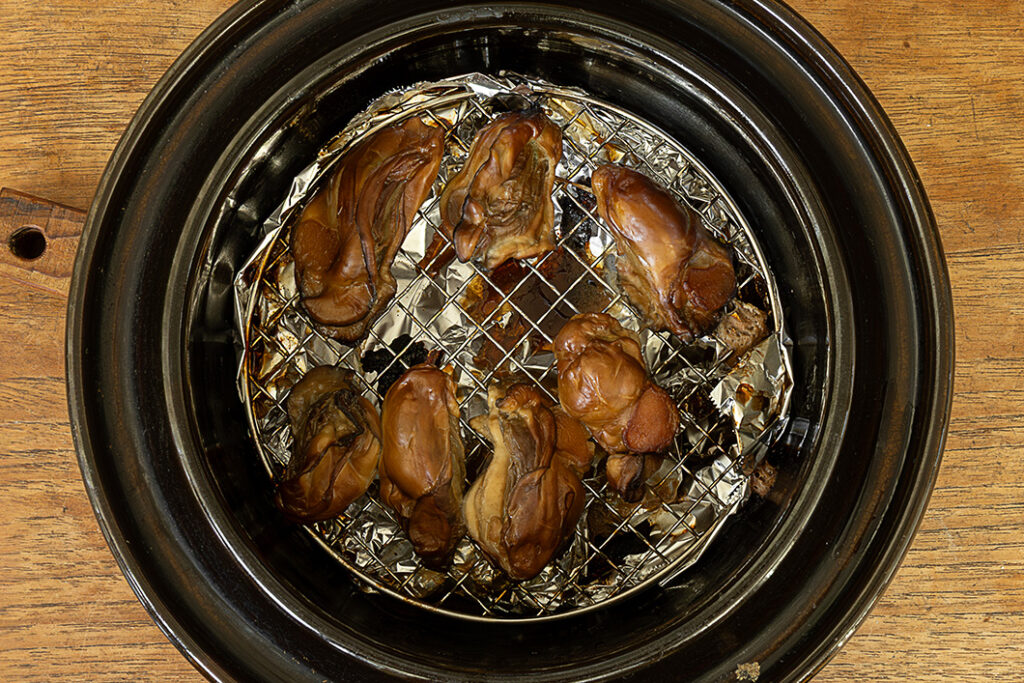 燻す前に牡蠣の水気をできるだけしっかり拭き取ることがポイントです。食材が水っぽいと、煙のえぐみや酸味が出て、美味しい燻製に仕上がりません。