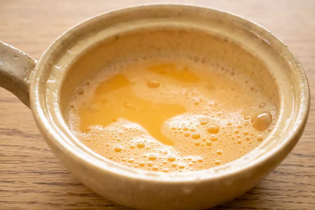 ボウルに材料を全部入れてよく混ぜ、エッグベーカーに注いでふたをする。