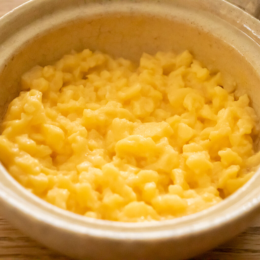 電子レンジから取り出し、フォークなどで全体を潰し混ぜる。