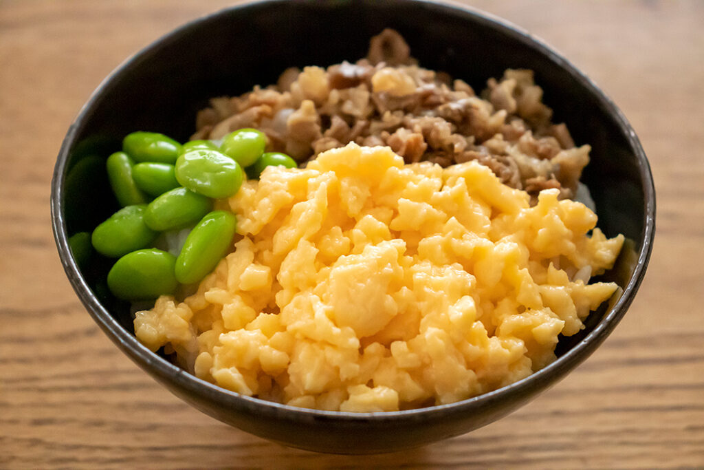三色丼や弁当の炒り卵に便利です。水を牛乳に・調味料を塩だけにしてスクランブルエッグやオムレツ風など、バリエーションもいろいろできます。お試しください。