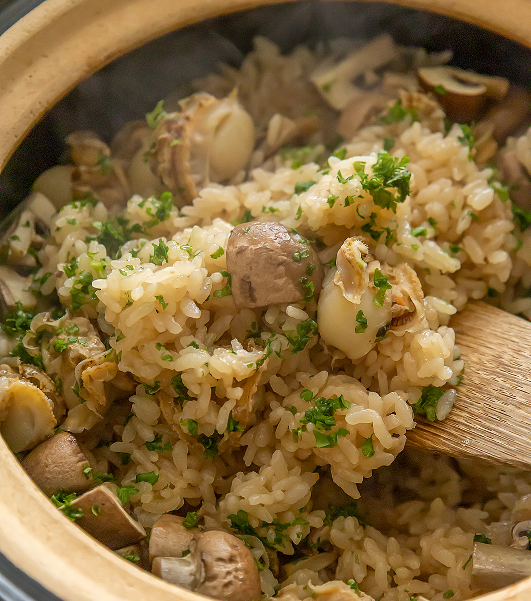 マッシュルームとホタテの炊き込みごはん