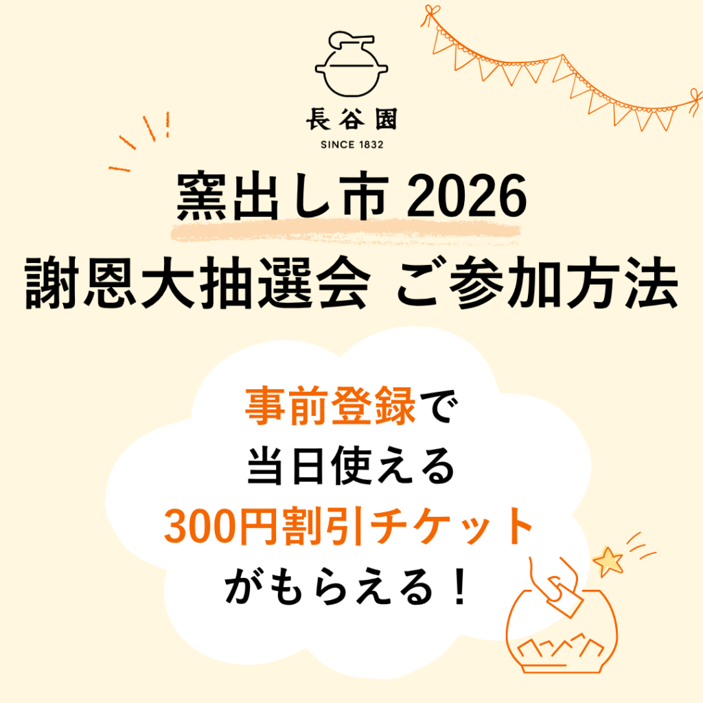 窯出し市2026.04.07窯出し市 2026 謝恩大抽選会 参加方法《4月30日までの事前登録で当日使える割引チケットをプレゼント》謝恩大抽選会 窯出し市では、日頃ご愛顧いただいている皆さまへの感謝の想いを込めて、謝恩大抽選会を開催します!くじ引き抽選で、長谷園公式通販や […]