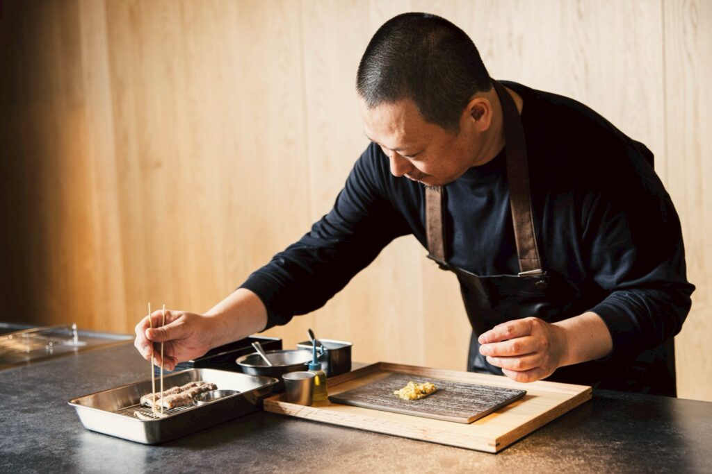 大学卒業後、営業職のサラリーマンとしてスタート。28歳の時に京都ホテルオークラで調理の勉強をはじめ、レストラン萬養軒、婚礼会社を経て、箱根のハイアットリゾートに転職。「世界一の朝食」で有名なBills(ビルズ)東京の立上げから料理長を経験。34歳の時に星野リゾート軽井沢、竹富島などで調理を経験。38歳で福井県のレストラン業による地域振興計画に参加し、料理長として2店舗を立ち上げ。40歳で滋賀のロデルデュラクに移り、料理長として2019年・2020年と「ゴ・エ・ミヨ」を受賞。アクアイグニスのレストラン「ヒノモリ」で勤務後、津市「黒がね」の料理長として就任。発酵・熟成を得意とするが料理のオタクであり様々な食材や調理方法を日々研究している。趣味は読書。