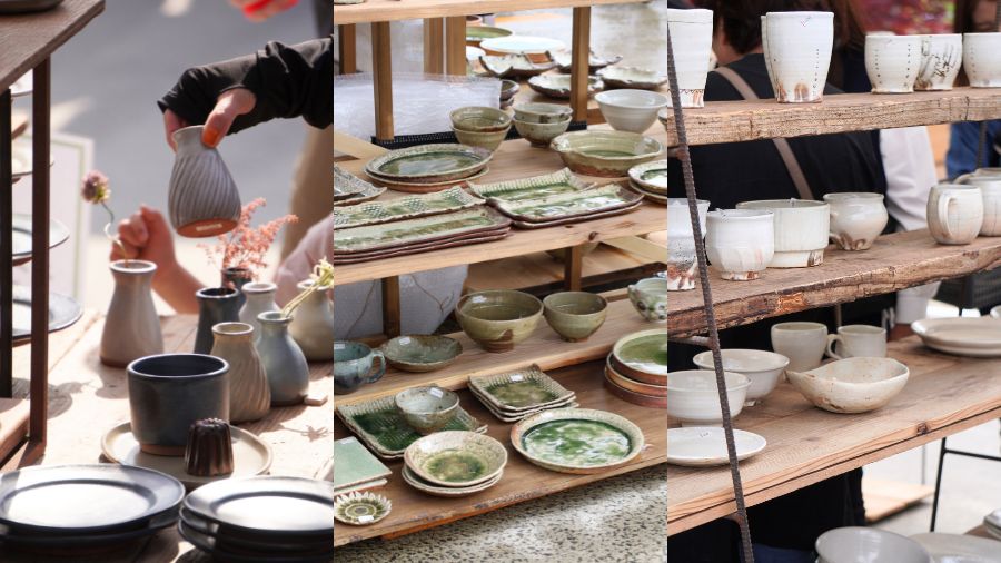 毎年5月の2・3・4日に開催する陶器市「窯出し市」は、三日間で3万人を超えるお客さまが訪れる長谷園の恒例行事。陶器の作家が集うだけでなく、雑貨やフードなど約100店舗が並びます。