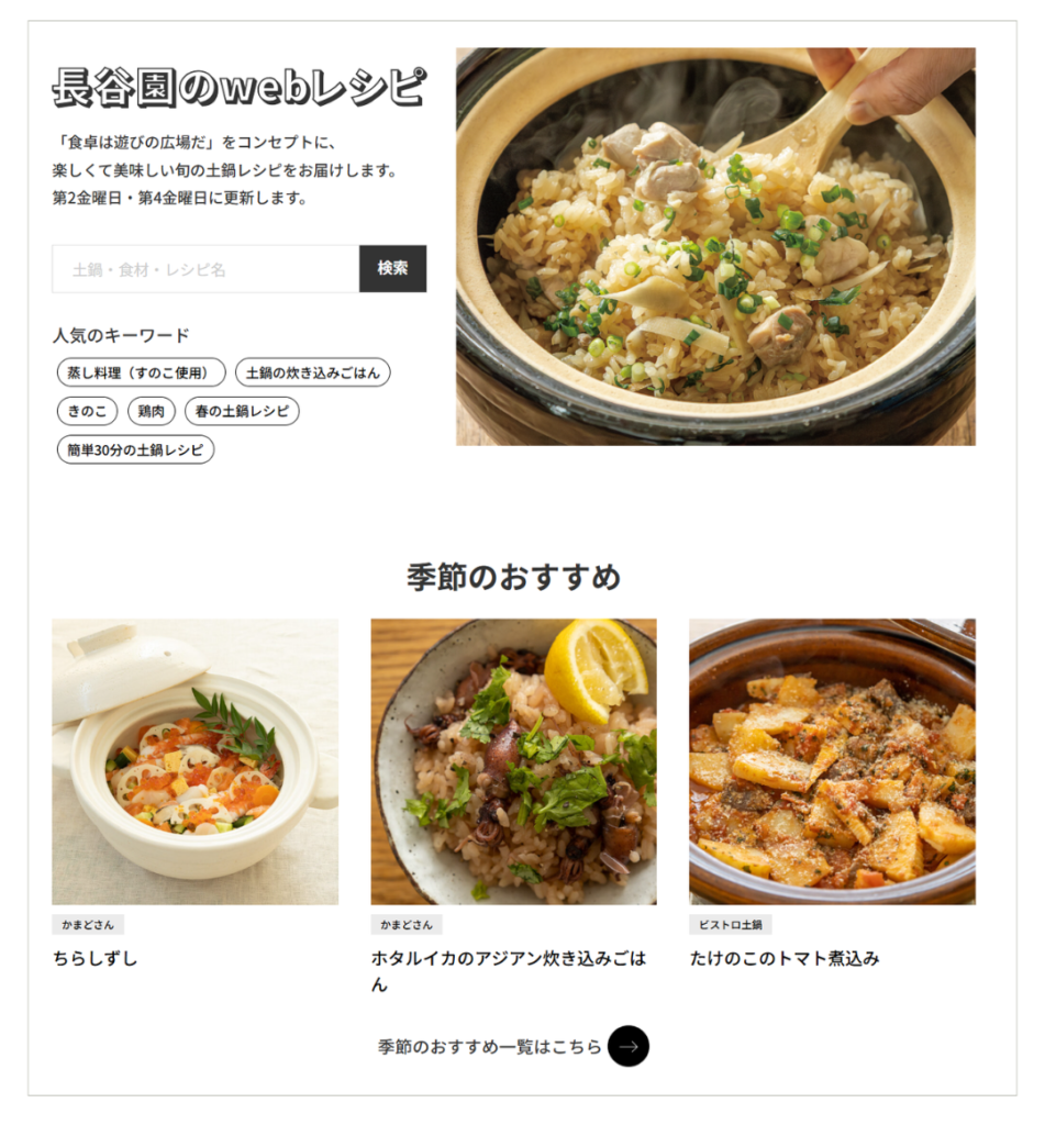 また、今回のリニューアルでは、「長谷園だより」の中でwebレシピをご覧いただけるようになりましたので、読みものとあわせて土鍋のある暮らしの楽しさをお届けしてまいります!