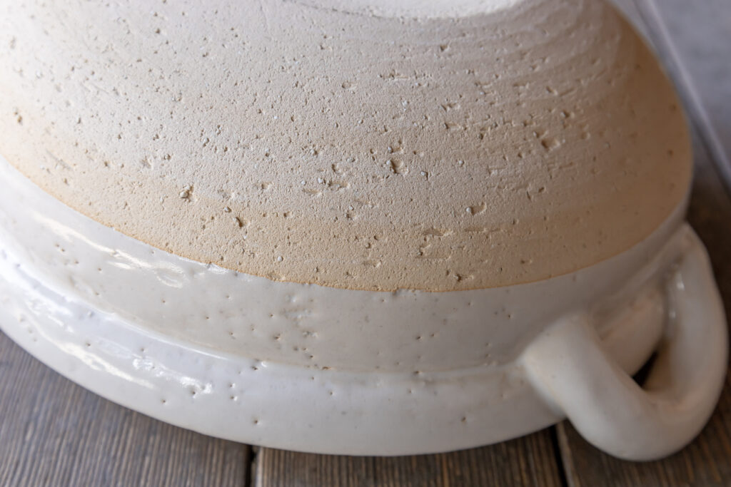 長谷園の機能性の高い土鍋は、伊賀の土の特性を生かして作っています。日本で採れる陶土のなかで土鍋になるほどの耐火度、蓄熱性を持つのは伊賀の粗土のみ。そのヒミツは、生物や植物の化石が多く含まれる400万年前の古琵琶湖層から産出される陶土。伊賀の地は太古の昔、琵琶湖の湖底でした。その地層から採れる陶土は耐火性が高く、江戸時代より直火の土鍋・行平・土瓶などがこの地で作られてきました。